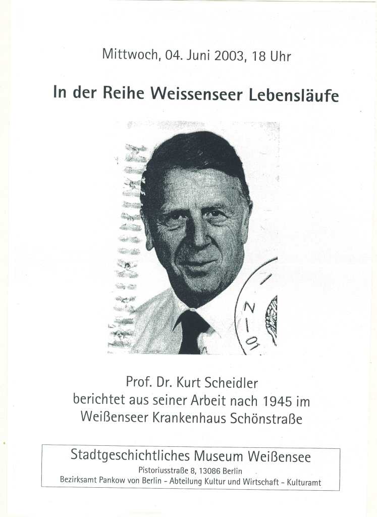 Prof. Dr. Kurt Scheidler berichtet aus seienr Arbeit nach 1945 im Weißenseer Krankenhaus Schönstraße