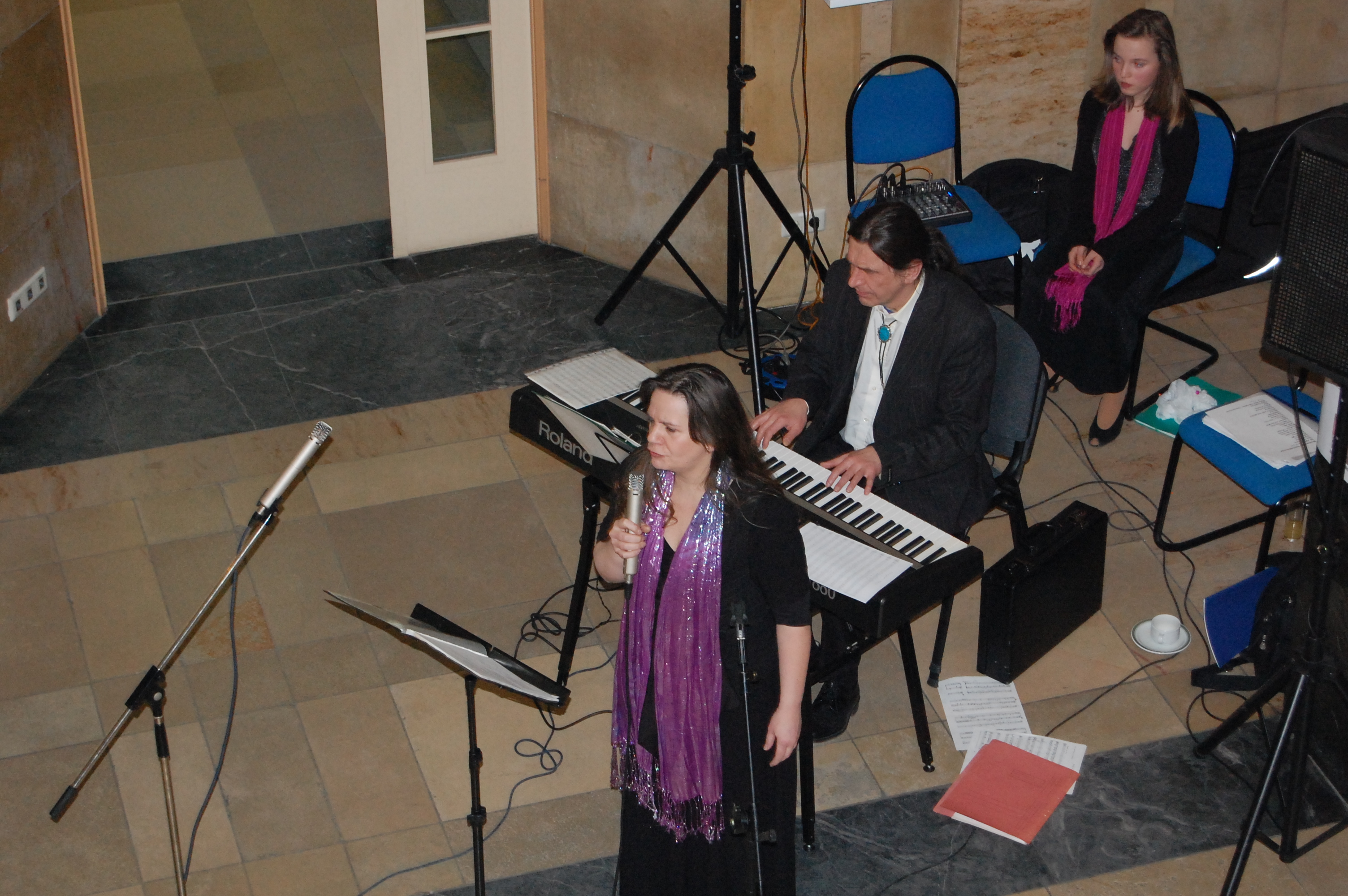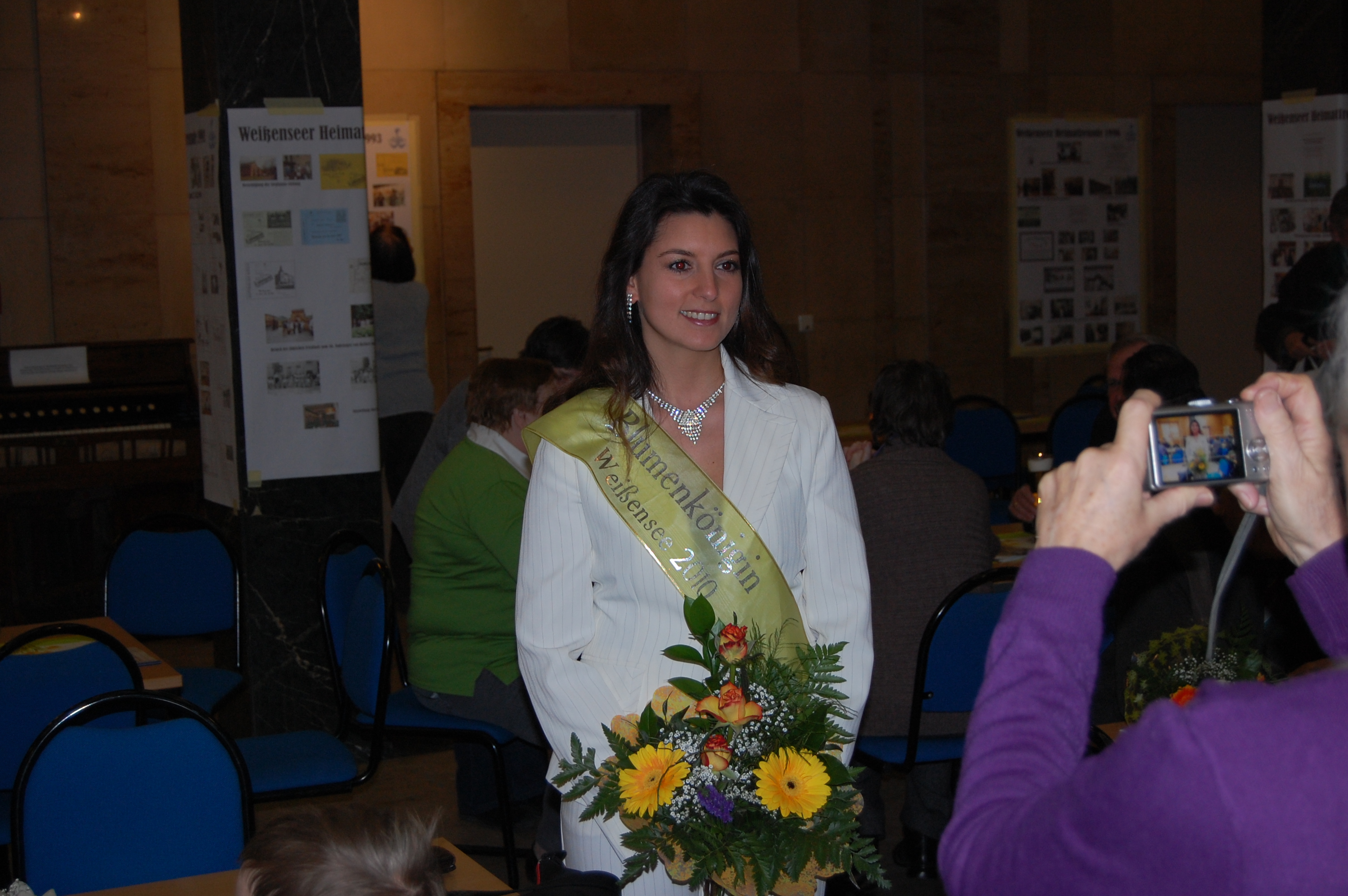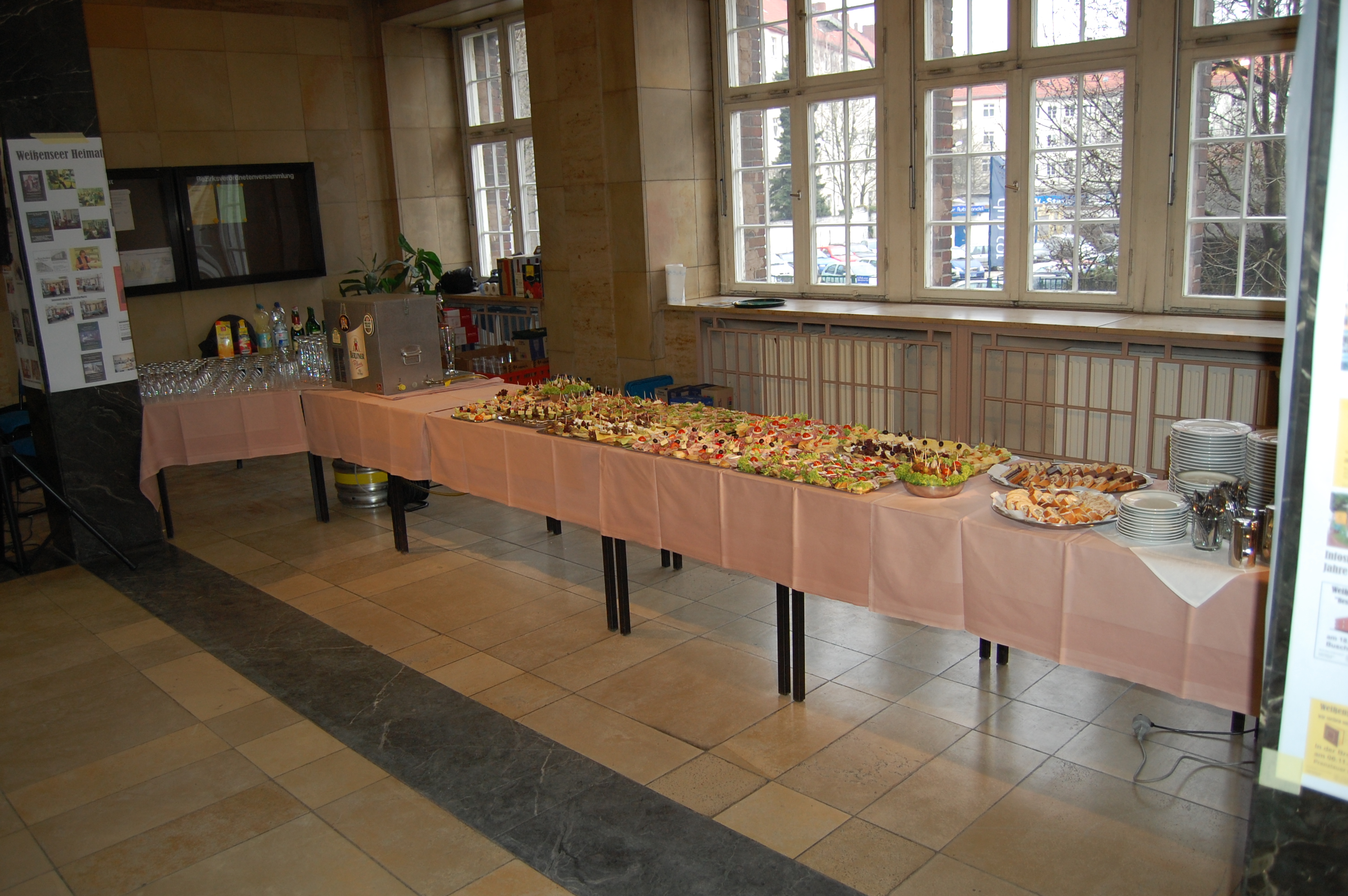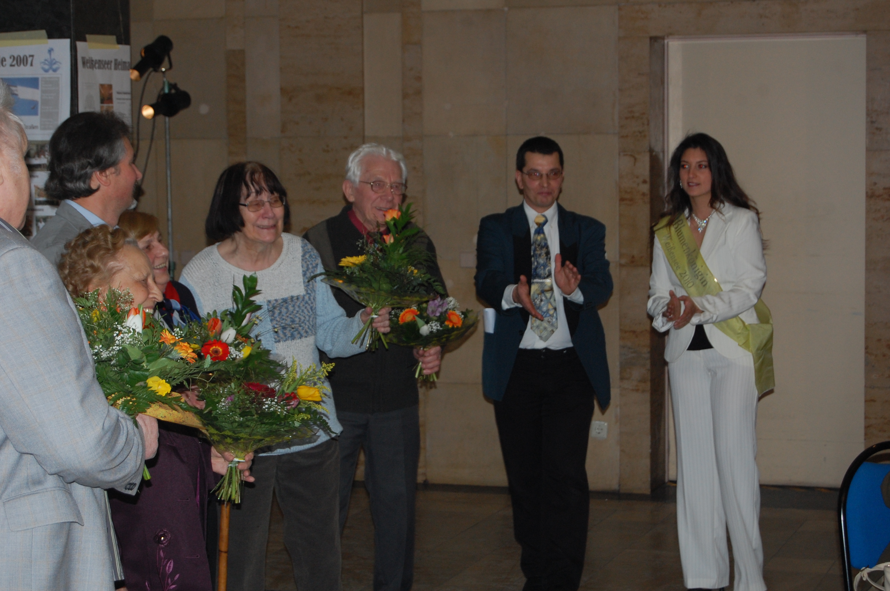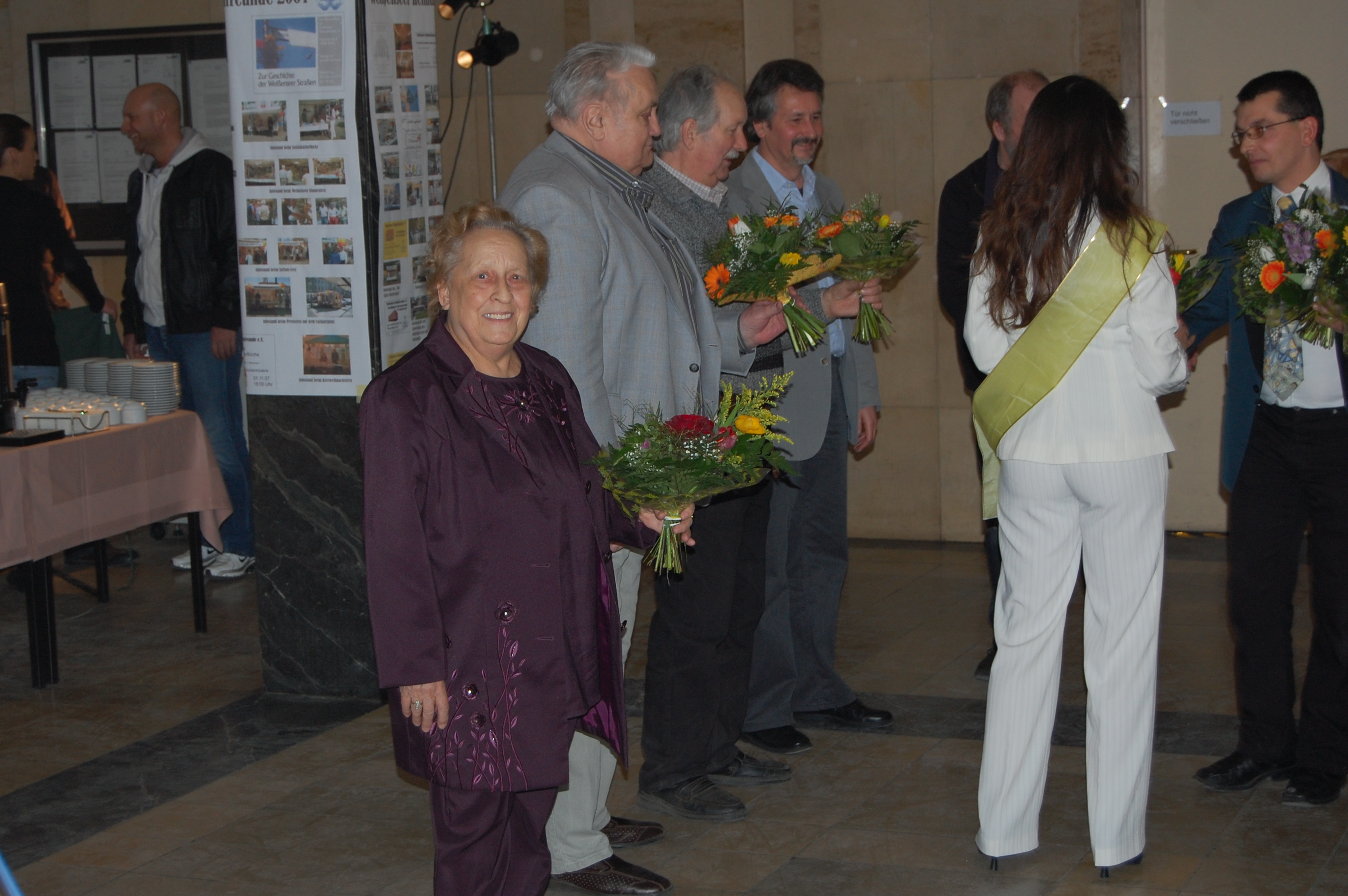 Ein kleiner Büchertisch zeigt die Ergebnisse der Forschungsarbeit des Vereins. An den Säulen war eine Ausstellung mit Veranstaltungsplakaten aus der 20jährigen Geschichte. Zusammen mit der Weißenseer Blumenkönigin stellte unser Vorsitzender Jürgen Kirschke einige Gründungsmitglieder des Verein vor. Den musikalischen Rahmen bestritt die Opernakademie Berlin. Im Obergeschoss waren Zeichnungen des Weißenseer Künstlers Edgar Ringert zu sehen.