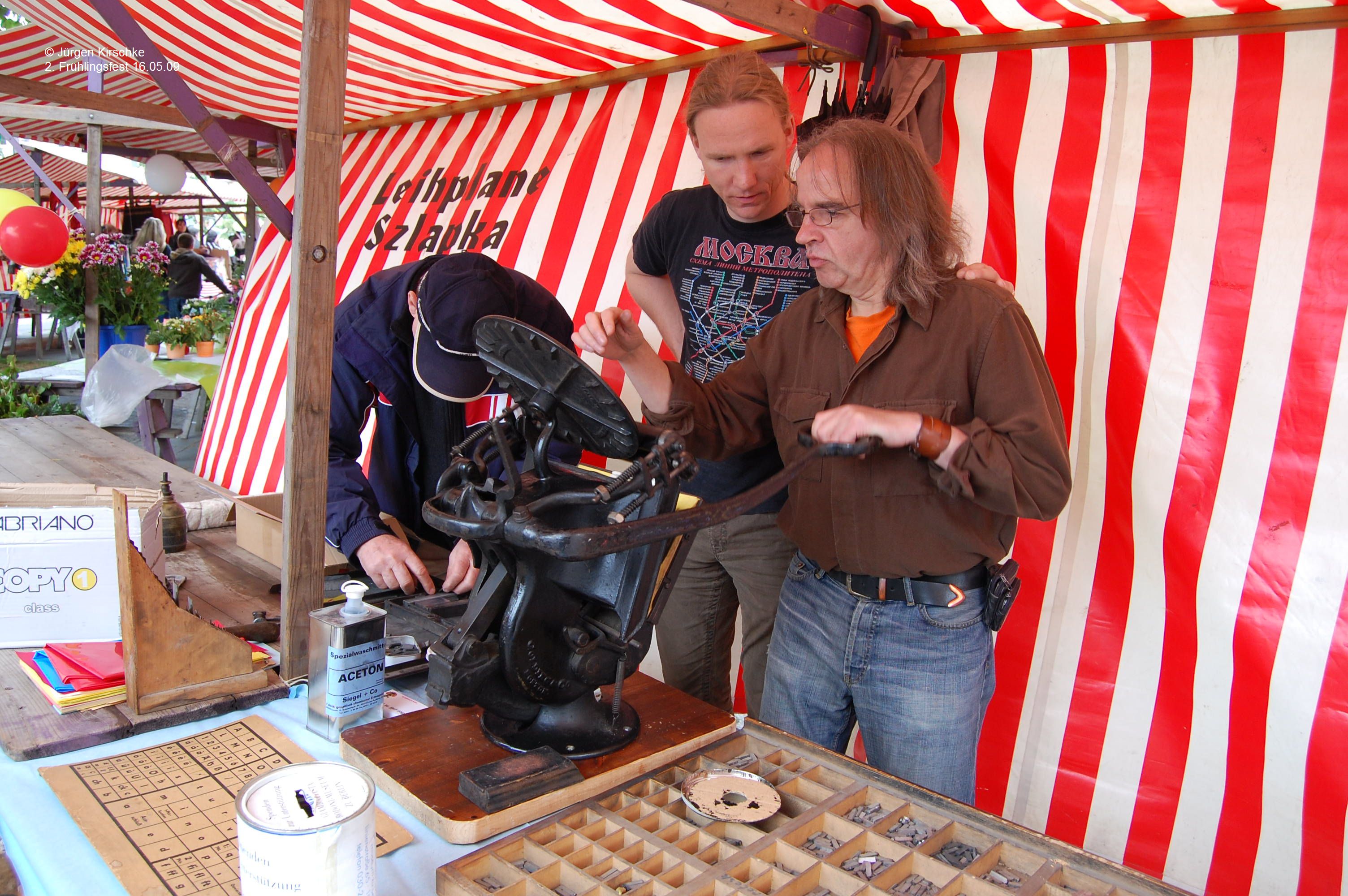 Auf dem Kiezplatz Gustav-Adolf-Straße Ecke Streustraße wird das Kindertheaterstück "Dornröschen" aufgeführt. Die Händler der Gustav-Adolf-Straße machen mit einem Tag der offenen Tür mit. Außerdem kann man bei unserem Hauptsponsor, der Druckerei Schmohl, die Druckerei besichtigen.