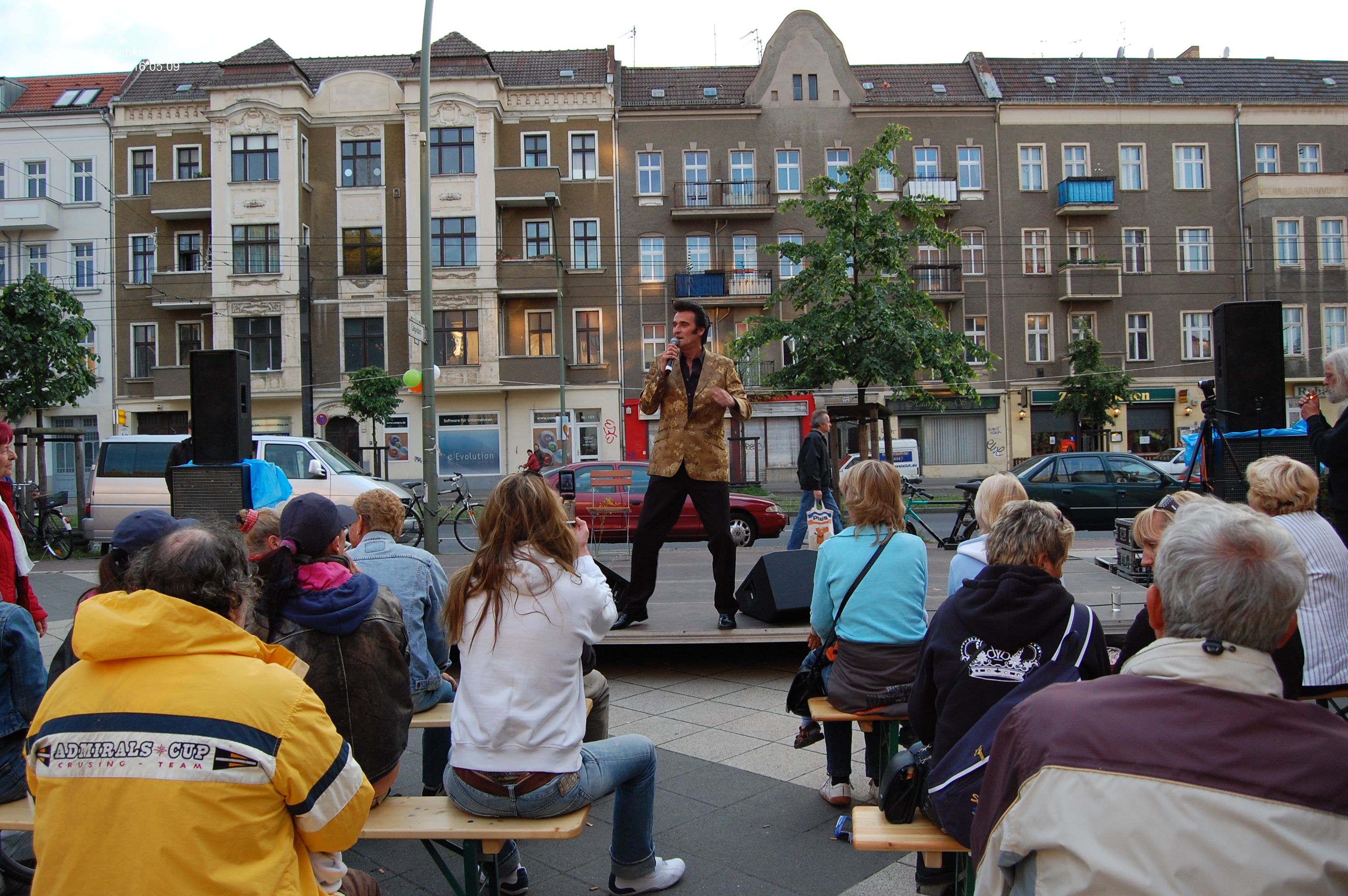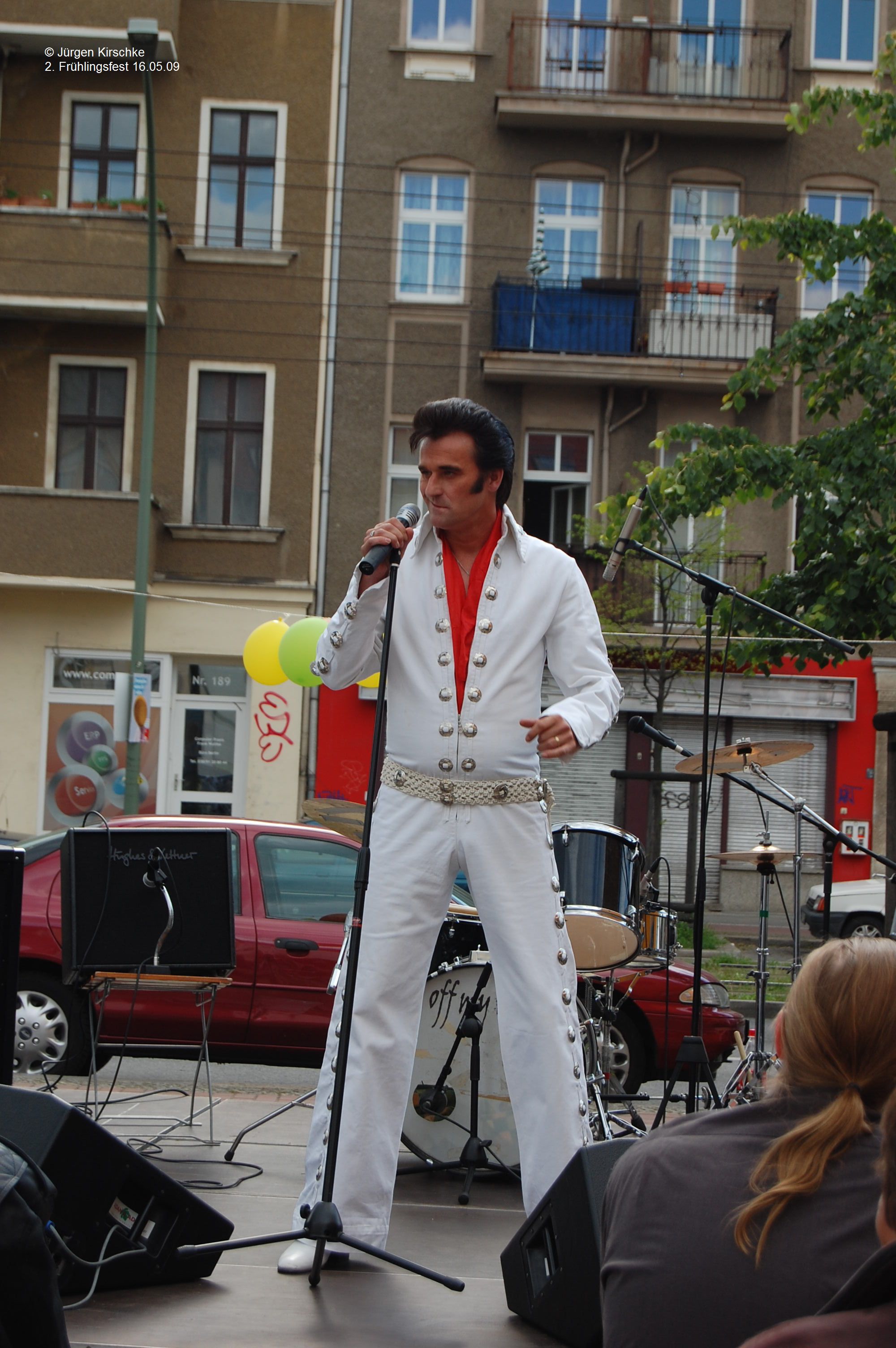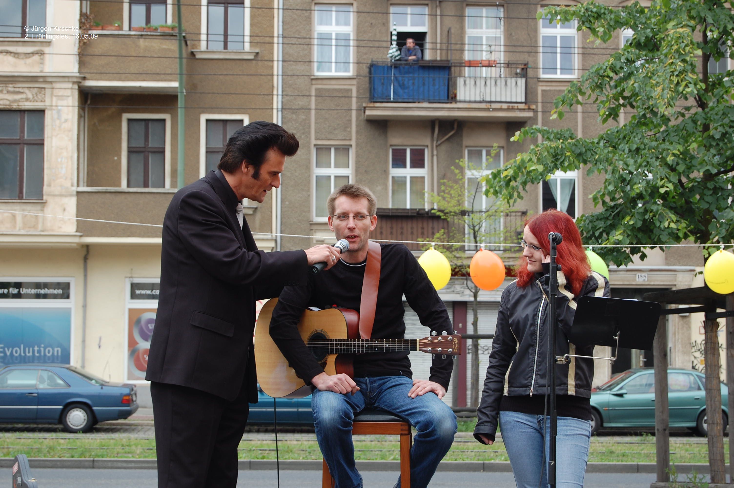 Durch das Programm führte ein Elvis-Double aus Weißensee. Im Hof der Brotfabrik befindet sich das Stummfilm-Star- Fotostudio. Hier können sich die Besucher in historischen Gesten fotografieren lassen und werden an die Geschichte der Filmstadt Weißensee herangeführt.