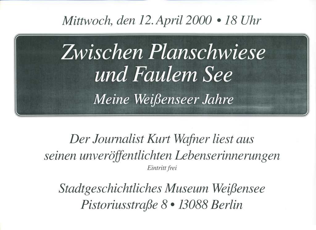Der Journalist Kurt Wafner liest aus seinen unveröffentlichten Lebenserinnerungen