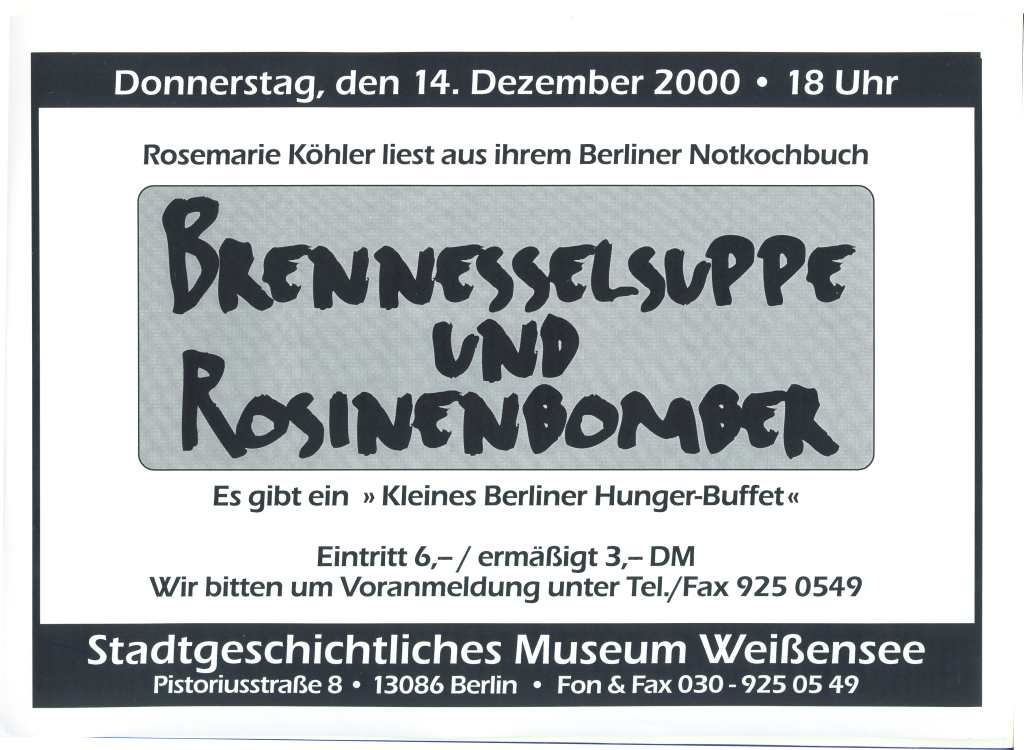 Rosemarie Köhler liest aus ihrem Berliner Notkochbuch