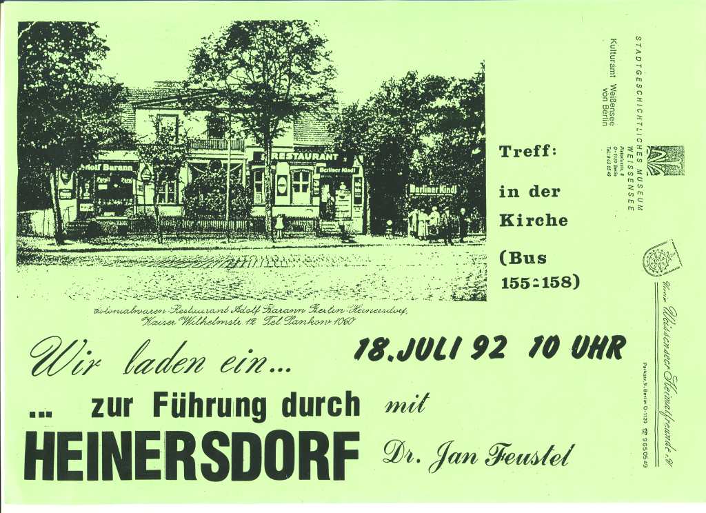 Zu einer Führung mir Dr. Jan Feustel durch Heinersdorf laden die Weißenseer Heimatfreunde