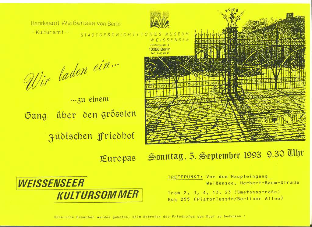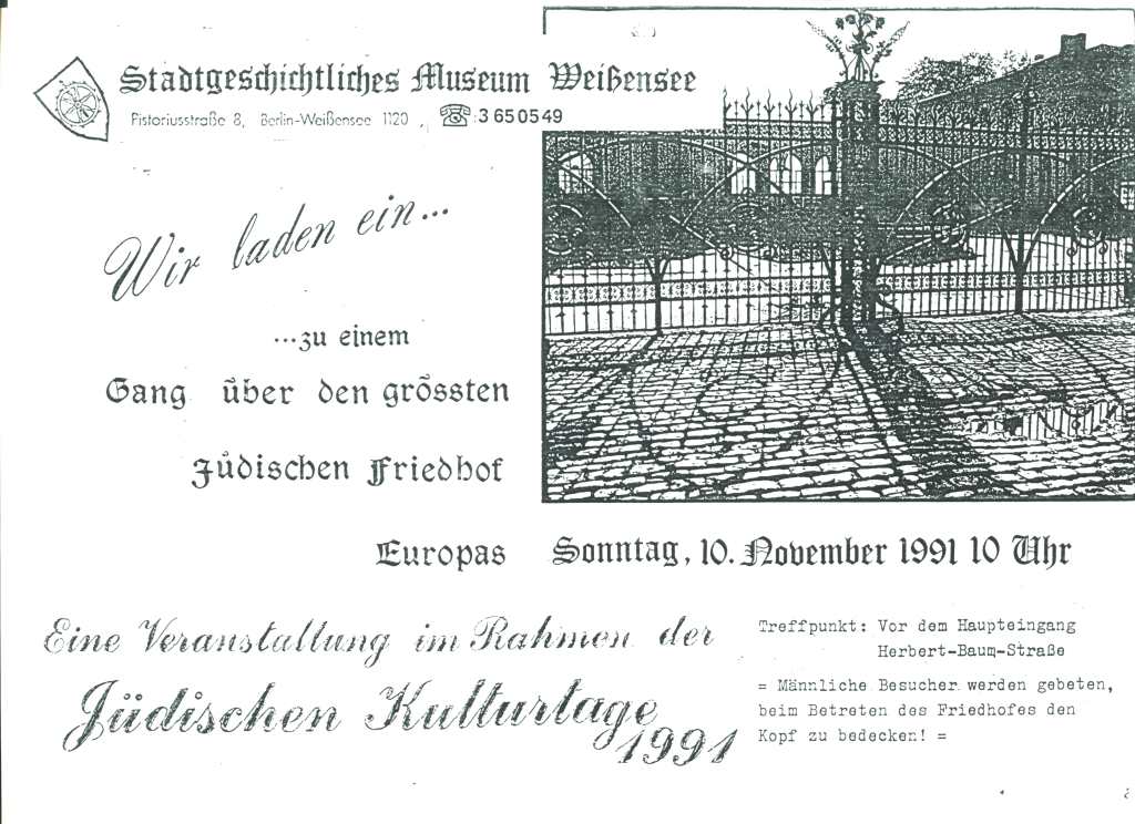 Im Rahmen der Jüdischen Kulturtage 1991 laden wir zu einem Gang über den größten jüdischen Friedhof Europas