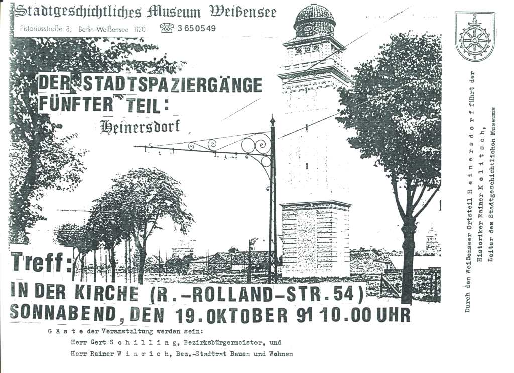 Der heimatkundliche Spaziergang beginnt an der Pfarrkirche an der Falkenberger Straße. Es führt durch die Geschichte des Ortsteils Rainer Kolitsch