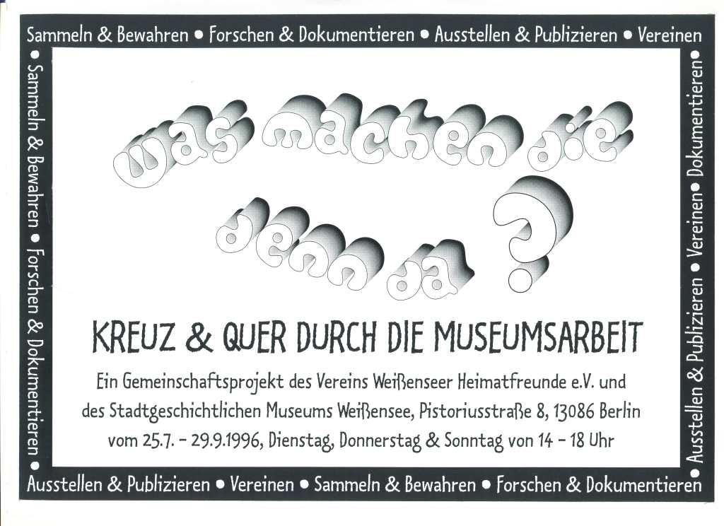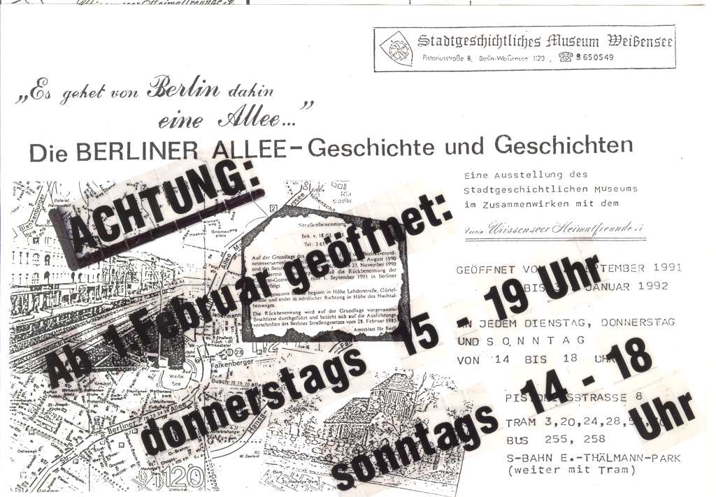 Die Berliner Allee - Geschichte und Geschichten. Eine Ausstellung das Stadtgeschichtlichen Museums in Zusammenwirken mit den Weißenseer Heimatfreunden.